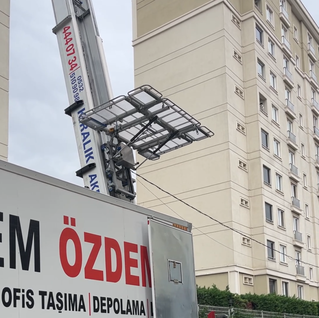 Binanın dış cephesinde modüler asansör kurulumuna uygun bir alan (pencere, balkon veya teras) ve aracımızın yanaşabileceği bir zemin olması durumunda 15. kata kadar asansörlü nakliyat hizmeti verebiliyoruz.